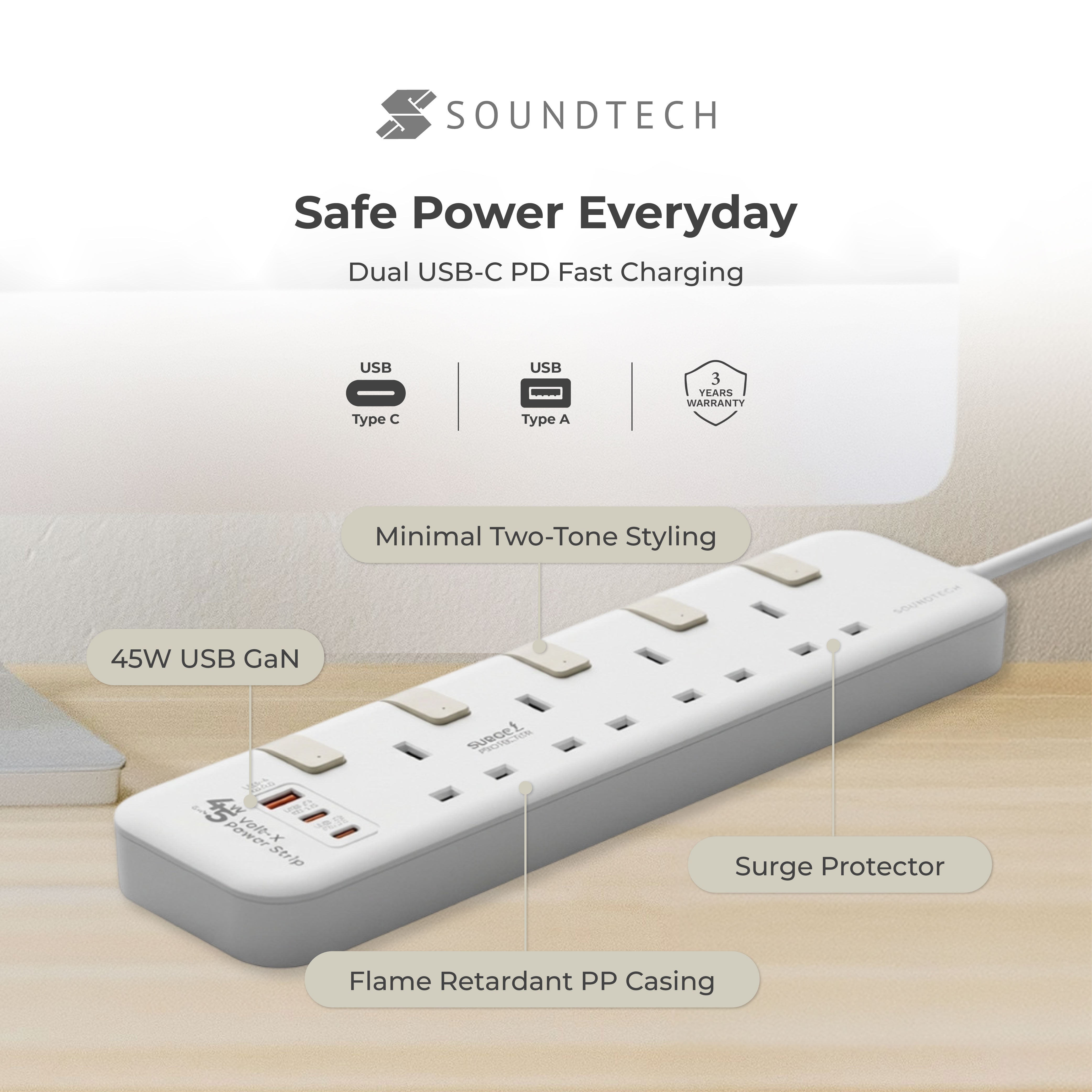 4 Ways Extension Socket PD45W USB-A+C Quick Charger with Surge Protector PS-645C