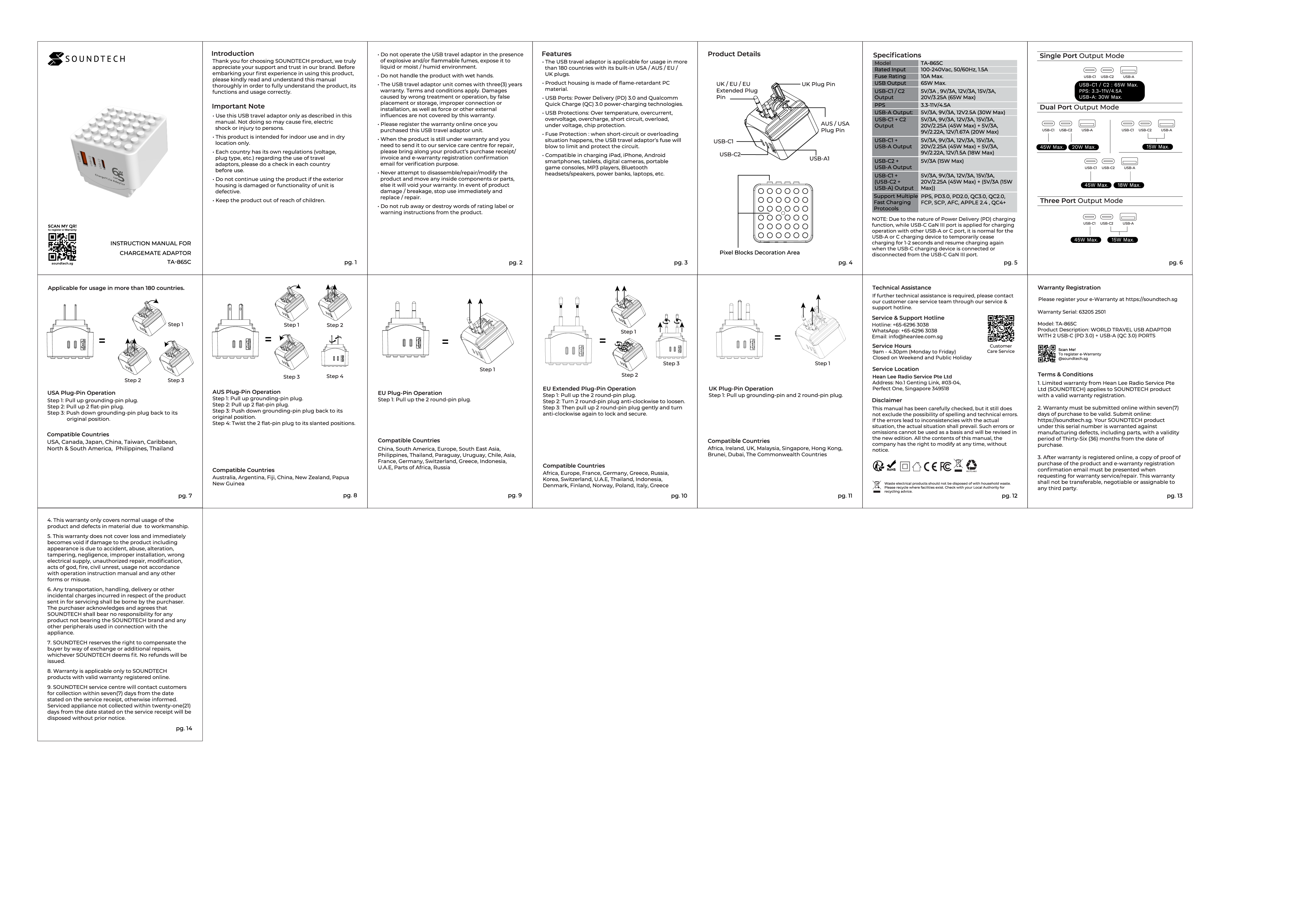 World Travel Adaptor with GaN PD65Watts USB Quick Charger TA-865C